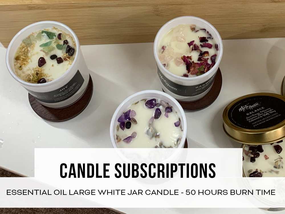 Receive a surprise large ‘essential oil aromatherapy’ candle from our ‘Glass Jar‘ range every month.